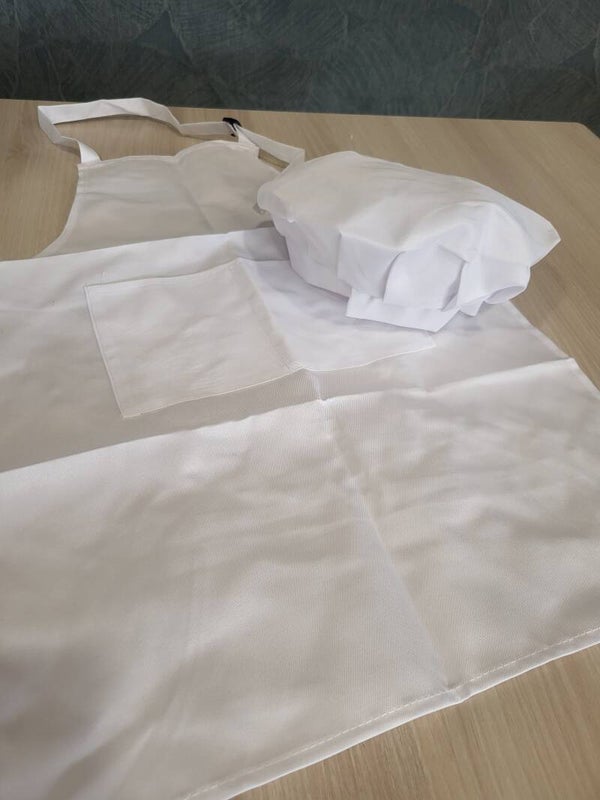 De set is gemaakt van stevig wit polyester, ideaal om te personaliseren met textielstiften, verf of strijkapplicaties. Laat kinderen hun creativiteit ontdekken en ontwerp een uniek kokstenue voor tijdens het koken, knutselen of spelen.